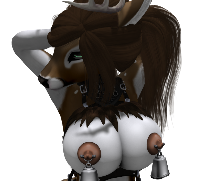 Next is the auspicious harness! I bring this up because it’s a perfect way to cover the top, though could require some boobie adjusting of size and position. I personally have two types of harnesses that I like to wear but just about any harness that has straps around and/or above the breasts is the look you’re going for. It’s very important to make sure that your harness has this as it covers flawlessly. You can find harnesses in sculpted prims, non-rigged mesh and rigged mesh (and even some clothing options with appliers). This one here is the one I wear most commonly as it has a large chest piece that affords the most line coverage possible on something made out of straps!