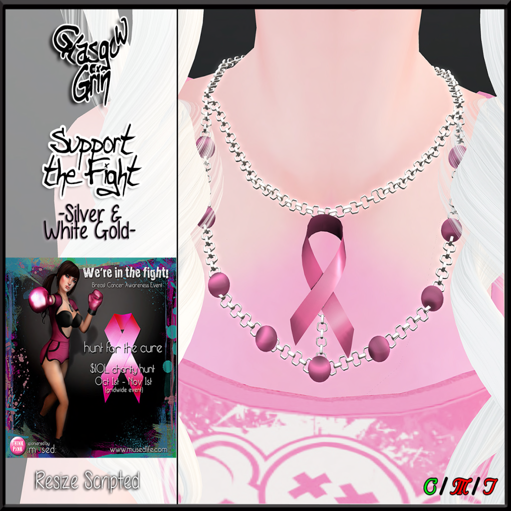 We offered once again to put up previews of the great gifts available in the years hunt. In this post and the following you can see some of what there is to be had as you help raise money for breast cancer patients. Click on an image to see a larger version of it, the name of the store and its place in the Hunt is on the Caption of the image and you can find all of the locations and hints on the hunt list.